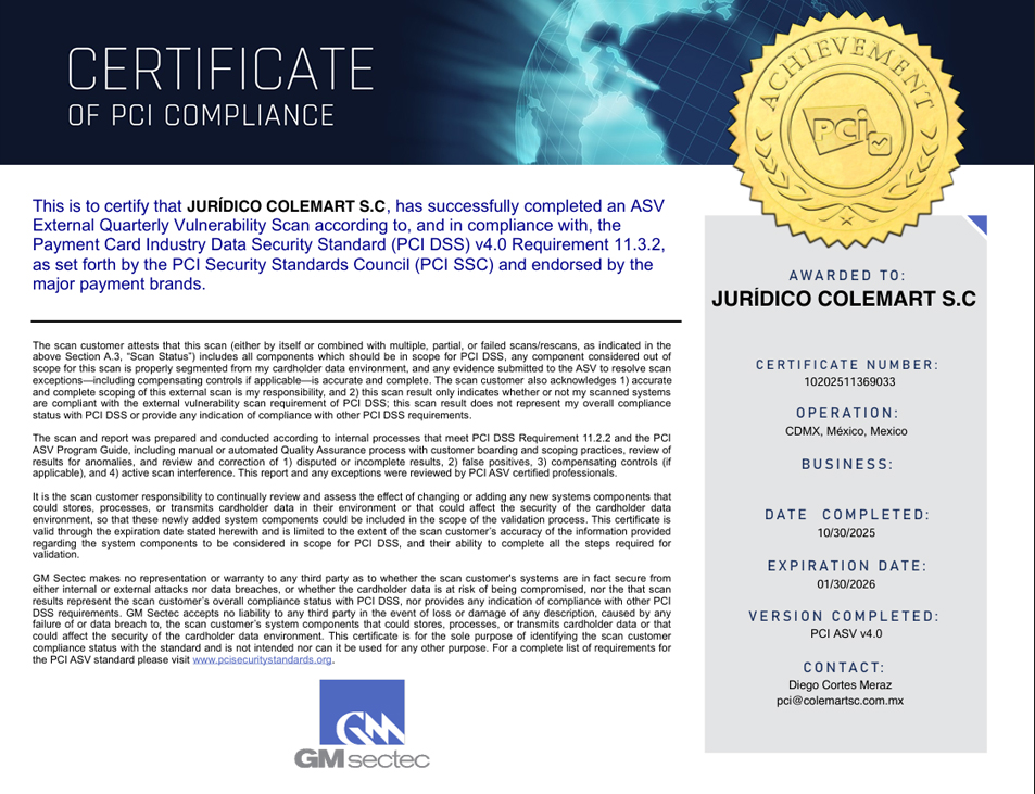 Queda prohíbida la reproducción parcial o total de los contenido de este sitio web sin previa autorización por escrito de Colemart, S.C.